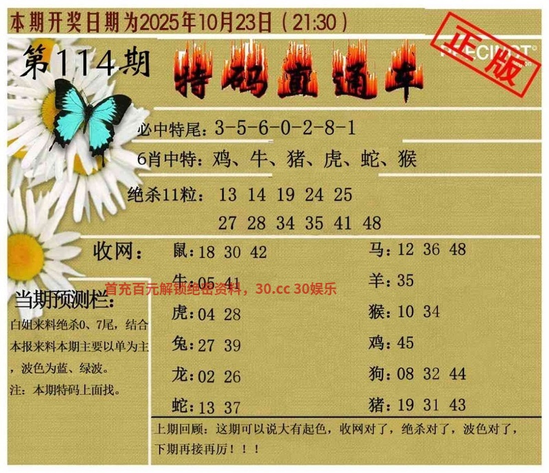 | 116期:必中六尾开:马24准 |